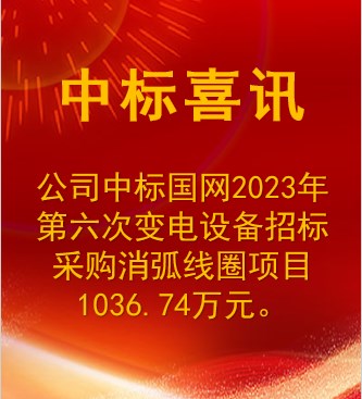 國網12月29日公示:我公司中標國網2023年第六次變電設備招標采購消弧線圈項目1036.74萬元。
